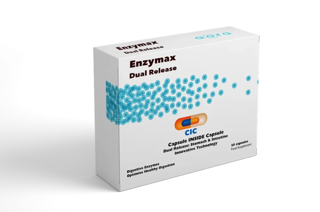 Enzymax DualRelease is a combination of microbial digestive enzymes targeting both stomach and intestinal digestion, with a fast and innovative technology. Thanks to these features, Enzymax DualRelease is able to offer a complete aid throuhgout the digestive tract, begining from the stomach.